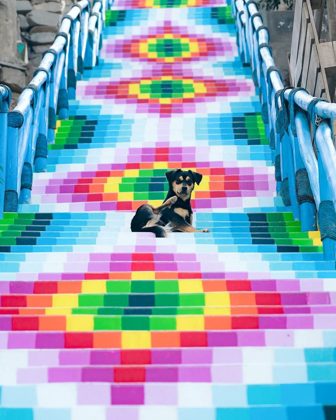 Alisos de Amauta是位於秘魯的低收入社區,樓房主要興建於山泥之間,小區頹廢破爛。秘魯街頭藝術家@xomatok,就與當地居民以傳統毯子「Llicllas」作為靈感,用了兩個月的時間,為13條樓梯,填滿鮮艷生動的顏色和圖案,為小區賦予生命色彩。Xomatok參與此活動,希望決策者能正視所有人都需要藝術與美的事實,放下固有偏見。