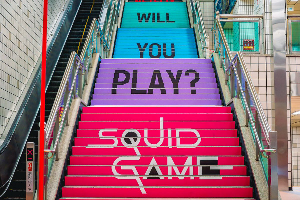 《魷魚遊戲》6 關考驗人性的遊戲,如果在現實世界出現,你夠膽挑戰嗎?知道大家最近沉迷《魷魚遊戲》,韓國 Netflix 把首爾梨泰院地鐵站化身劇中遊戲場景,在乘客下車的一刻,便成為被選中的玩家,色彩鮮豔的樓梯會問你「Will you play?Squid Game。」進入車站大堂後,第 1 關「123 木頭人」的大頭公仔便出現,還有巨型扭蛋機、身穿桃紅色制服的 △、▢、◯ 工作人員和放滿獎金的豬仔錢罌等候,不知誰會成為現實的贏家。
