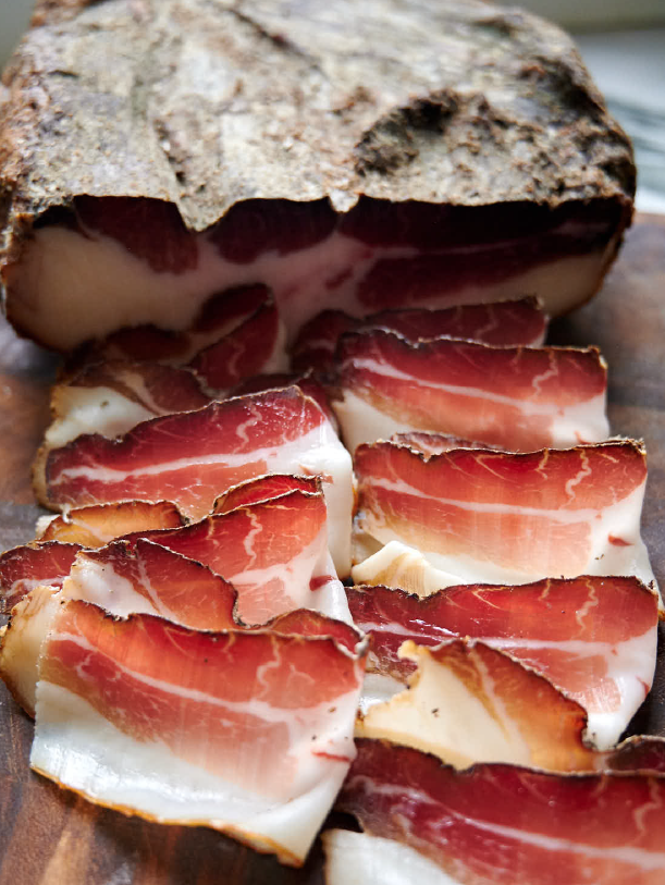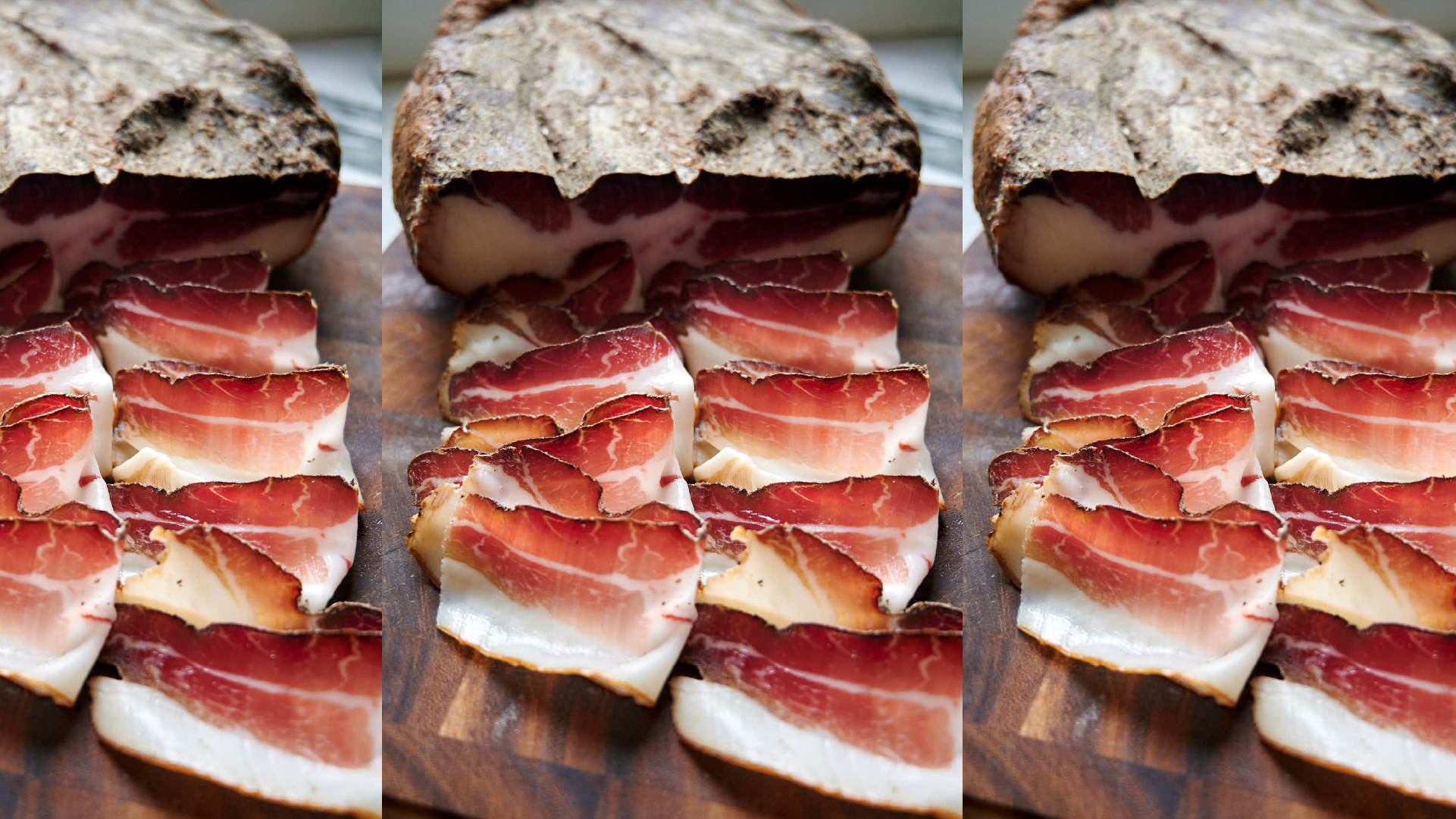 有錢又捨得使的香港人,萬物以貴為先。食火腿要食西班牙的,還要指定36個月食橡果大的伊比利亞黑毛豬。但其實,西方火腿家族十分龐大,被追捧多年的西班牙火腿越食越貴,價錢達離地境界。身邊不少鐘愛火腿之老饕,近年都紛紛反西歸意,情投意大利火腿懷抱。 可能你會嗤之以鼻,說意大利火腿那豈非指巴馬火腿嗎?巴馬火腿固然是其中一個皇牌,但意大利作為「火腿大國」,每年都出產大量高質又價廉物美的火腿,在香港超市或者意式雜貨店均同樣有售。下次到火腿冷櫃購買時,可試試跟肥饕指南。 若因火腿太鹹而敬而遠之,那你不能錯過煙燻肉片(speck)。此物其實是豬五花腩,肥瘦以大約各佔一半為上品,先醃後煙燻再風乾熟成。香料味不重,但其濃郁煙燻味最攝人心。由於屬輕度熟成火腿,沒有巴馬或聖丹尼爾那強烈而揮之不去的鹹味,加上那層白雪雪誘人脂肪,用作餐前小食,毋須配搭其他食物都可獨步天下。 牛頸脊你食得多,豬頸脊又試過嗎?如欲一試,下次在火腿凍櫃見到「coppa」一字,就萬勿錯過。這字代表豬後頸部位,肉質如梅花紋般肥瘦相間,可清晰見到肌理,故醃料毋須複雜,簡單以鹽、酒、大蒜等醃製後再風乾數月即成。價錢較那些巴馬火腿便宜一大截,但其性價比非常高。不過要留意,另一款火腿「coppa di testa」都有「coppa」一字,但此火腿是指以豬頸肉加豬面肉、豬皮等壓製加工而成的肉凍,雖然同樣美味可口,但兩者是完全不同類型的火腿。 另一款經常在火腿凍櫃被人遺忘的狠角色,便是全身火紅赤色的風乾牛肉(Bresaola)。此物以牛腿去骨去肥後,再以粗鹽、肉桂、荳蔻等包裹並風乾。切得極薄的風乾牛肉,不帶半點脂肪,入口軟嫩得來帶嚼勁,適合邊呷威士忌,邊吃這款越食越有味的牛肉珍品。 最後出場亦是最重口味的,恕我有點私心。嚴格來說它不是火腿,它就是有意大利豬油渣之稱的醃豬油(Lardo)。沒錯,就如其名一樣,Lardo就是純粹一塊經迷迭香等香料醃製最少半年的肥豬油,晶瑩剔透的Lardo是意大利菜經典「調味料」,效果有如法國菜之鴨油、粵菜金錢雞中那片「冰肉」無異。刨薄片後放上熱烘烘的麵包固然美味,配無花果同吃亦感受到那油潤甘香。若用來下廚加熱,刨幾片Lardo加入意粉同煮,其魔力分分鐘較白松露更吸引。