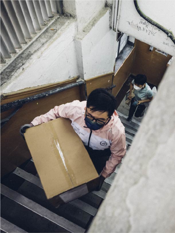 【為幫人可以去到好盡!】|#ACOOxShare for Good愛互送 健碩的安仔左耳戴一個耳塞連接公司手機,右耳戴另一個耳塞接聽私人電話,但講的也是公事。雙手要不是靈巧地控制軚盤,就是有力地提起貨物,搬貨、運貨、送貨。他每日開工朝七晚七,疫情最吃緊時試過開07收01;安仔是「Share for good愛互送」派送團隊成員,跟新世界合作十年,過去兩年經他雙手送遞的抗疫物資無數,「送物資給NGO,他們總是很期待又很感動,不斷多謝我,搞到我唔好意思⋯⋯」 跑在最前線的安仔,大概於今年二月中,感受到空氣中那股異樣氣氛,「覺得唔對路,運送的物資開始多,環境好惡劣,好似行出街都會中咁。」如果你還記得,那陣子有幾日氣溫驟跌,醫院急症室爆滿有病人露宿在外,當晚新世界立即從旗下酒店緊急調動了100部暖爐,安仔便是那個開車送暖爐的人,「那幾日好凍好凍,我開車把暖爐送去幾間醫院和社區檢疫中心,新世界派出義工一齊幫忙。」 與此同時,安仔也下了一個果斷決定,「我成日周圍跑,touchwood不知幾時會中。」他將太太和女兒安頓在外母家,反過來把自己隔離在工作裏,每天戴兩個口罩、獨自跑十幾個鐘送遞物資、一個人在車廂吃午餐、放假也不外出。「開頭屋企好靜,好唔慣。」安仔嚴守「反隔離」措施,每天收工發訊息給太太,然後太太就從幾街之隔的娘家準備好飯菜,帶回家中放下,「那時我應在浴室洗澡,太太放下飯菜就走,我們不會見面,只會電話傾。」 直到三月最後一個星期日,安仔才終於跟六歲女兒「真人」見面:「出世至今未試過咁耐冇見