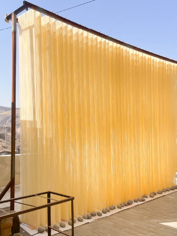現今家庭中,居家抗疫儲備適量糧食時,米也許不是首選,簡單易處理的麵食比較實際。 我自小家中也會常備最簡單便宜的乾身麵條,用些少金華火腿絲或者用薑蔥輕爆炒過的肉碎,倒入冷水煮湯,放入烚好的麵條,加隻煎雞蛋、青菜、蔥花,也可以用前一晚餐剩下的餸,如雞翼、叉燒放入去「加餸」。煮這樣的麵充饑是我的日常,一大包才不到十元掛面比即食麵便宜,後來長大了發現,很多人不吃掛麵,其中一個原因是沒有附上的調味料,直接煮淡而無味,年少時甚至會因自己會煮這樣的麵條而自卑,因它的確沒有即食麵好吃,長大後才明白,正正因為這樣家家才有自己口味的掛麵,而我下廚的基礎也是這樣來的。 前些年我到了陝西北面一條村,早上約十時左右,一眼望去山上那「梯田」似的窰洞外,幾乎家家戶戶的空地都掛起了一縷縷金絲,到處飄著麵粉香氣,那正是製作掛麵的其中一環,「上架」把麵晾曬的程序。那時我才知道,原來陪伴我成長的掛麵,原始做法真的是如何掛出來的。 掛麵是這個鎮的傳統工藝,工序由半夜開始,讓小麥麵粉搓成的麵團發酵,拉成條狀「上筷」,即是把長長的粗麵條在兩隻固定的長竹筷上繞圈,就如織布般,要敏捷又小心地排好一行一行。然後透過拉開兩隻竹筷的距離來拉長麵條。 到早上沒有朝露,太陽正猛的時候,把麵拿到室外,把一邊的竹筷打橫把麵架起來,麵就會垂下,此時用手拉下另一邊竹筷,把麵拉長懸垂著晾曬,一絲絲天然淡黃色的麵條在陽光下閃閃發亮,在微風中搖曳,有如一把小提琴斷了的弦線。我嘗試拉長麵條時小心翼翼,怕把它拉斷,但動作太慢會令麵粗幼不勻,於是在指導下用力拉,沒想到麵條如此有韌性,在乾旱的黃土地上晾曬一天,就成了筆直的乾麵條。切割好之後村民會用一張紅紙在中間綑起來為一扎出售。 而這個吳堡縣鎮生產的掛麵有個特色,就是製成後每條麵中間都是空心的,我本來只當是個傳說,但眼見的確發現由麵横切面看去,中間的確有個針孔般小的洞。這效果是如何得來?村民說他們也不知道,可能是水土特別做成,但附近的鎮也沒有這效果。即使對何謂水土毫不了解,村民對這不明原因的通心效果十分自信自豪。 這幼幼的掛麵配上羊肉湯,麵身幼滑之餘,因湯汁流入中空的麵條而特別入味。令我覺得難能可貴的是,我把這麵帶回香港兩三週後就發霉了﹗可惜之餘,此刻我也感受到,沒有防腐劑,正正是它的可貴之處。
