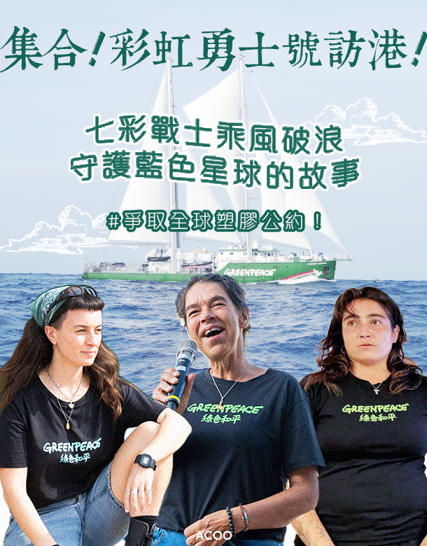 小時候下課看動漫片,總會有這麼一齣「戰士」片:怪獸侵襲地球,五個被選中的平凡人變身成五星戰隊,集結眾人力量,擊敗怪獸,維護地球和平;現實生活中,也有這樣的一個彩虹戰隊——說的是綠色和平的傳奇船艦「彩虹勇士號」。這艘船在全球航行,從事有關環保議題的宣傳和抗爭行動。 住在船上,踏上航海的征途,就代表船員們犧牲與家人朋友相聚的時光,與大海為伴。那麼,是甚麼叫他們投身這艘船,把自己的生命奉獻給自己的信念?今年,「彩虹勇士號」將展開「無塑・啟航」東亞之旅;近日這艘船更到訪了香港,讓我們了解一下,這群五彩戰士的故事。 文字:Heidi @heidi.is.strong 設計:Po @p12_o28 |Lee:面對家鄉被破壞,選擇挺身而出 Lee來自夏威夷,在彩虹勇士號的崗位是機械技工,負責維護、管理船上大小設備,確保船隻航行暢順。 2018年,Lee跟隨綠色和平,前往夏威夷一個無人小島「Kaho’olawe」進行淨灘審計。讓人震驚的是,這片土地深受塑膠污染殘害,導致珊瑚退化、貝殼與魚類逐漸消逝,美麗的海洋取而代之只剩塑膠垃圾飄浮。「我們一行 30 人花了足足一星期,盡量清理漁網、膠樽、膠袋、浮標等垃圾,再跟船運走棄置。但辛勞一整天後,你幾乎看不出整個海岸有什麼分別,而棲居的野鳥、海龜、鯊魚等生物只能無辜遭殃。」 及至2020年,Lee在美國開辦了自己的非牟利組織 ,提供免費課程,又教導孩童如何耕種有機農作物及本地樹種、每周清理河岸垃圾等。除了當值時專注彩虹勇士號技工的職責,Lee在工餘時間尚要兼顧自己NGO的事務。不過,Lee仍樂此不疲,又到處問船員「What is your hope for humanity?(你對人性的希望何在?)」,並以此作為影片主題。「環境保護,是我生命的一部份,也是我的終身志業」,Lee堅定地說。 |宋涵(Hannah Short):重回香港 一圓水手夢 彩虹勇士號每次行程,需要15-17位船員謹守崗位護航,不時會按照項目需要招募義務水手。宋涵便是其中一位,「我的主要工作之一是確保船艦清潔,打點大小船務,確保十多位船員在船上快樂、和睦共處!」 Hannah 於英國出生,一歲時跟隨父母移居香港,一住便是 17 年。在香港就學時期,她已接觸環保議題——過度捕魚。那時候,她在學校設立了一個「FISH- Fishing Improperly Stops Here」倡議小組,並爭取學校停止採購瀕危魚種食材。在Hannah15、16歲時,綠色和平其中一艘船艦訪港並舉行開放日。她在參觀時深受觸動,看見工作中的船員,心感羨慕,盼自己有朝一日成為一份子:「當時我很強烈感到,他朝將會投身環保行動。因為當氣候變化等各種環境問題懸而未決,其他事情還有何意義?」…