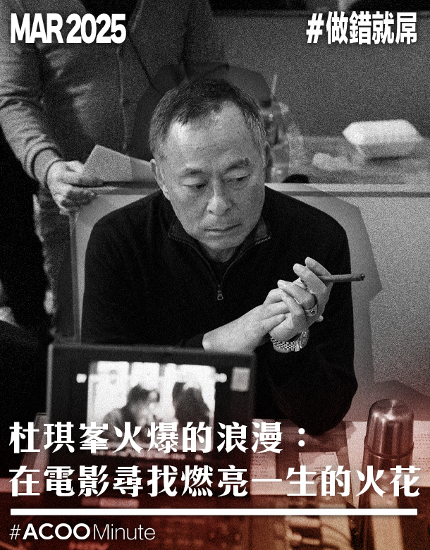 杜琪峯數年未有新作,近日有日媒報道,杜Sir將開拍一部圍繞香港黑幫的作品,影迷都翹首以待。杜琪峯出名敢言火爆,數年前他在節目《鏗鏘說》中展示自己辦公室中的一張橫幅,橫幅上的字被網民惡搞改為「做錯就屌」,在網上廣為流傳。(翻查才記起,原有的字其實是「止於至善」。)大家對杜Sir之所以有此印象,大概來自2013年一套有關他的紀錄片。片中他因為現場工作人員不專業的表現而爆粗怒罵,有些罵人語錄被網民cap圖引用,以至他的火爆形象深入民心。 杜Sir火爆,因為他認為每個崗位的人,都必須要專業地做好自己的工作。對於自己,他亦同樣要求嚴厲。他是紅褲仔出身,由電視台PA做起,後來有機會執導電影,但初嘗導演滋味後,發現自己不懂電影,於是決心回到電視台,花了6年時間磨練,才重新踏入電影圈。他拍過多部賣座電影,如《八星報喜》、《天若有情》、《十萬火急》等,商業上大獲成功。但他並不滿足於拍這些商業電影,認為自己只是作為技術人員,而並非電影的作者。他渴望拍真正屬於自己的電影,於是在1996年,與韋家輝等人組成銀河映像,製作了一系列極具個人風格電影,包括《一個字頭的誕生》、《暗花》等,不少作品至今仍為影迷津津樂道。 銀河映像成立時,正值97金融風暴,香港電影市場陷入低潮,沒人願意投資。銀河映像也經歷了一段艱難的時期,幾乎連租也交不起。《鎗火》當年的製作資金只有250萬,遠低於當時一部電影的平均製作成本。但貧窮並沒有限制想像,為求慳錢,《鎗火》僅用了19天拍攝,成功用蔗渣價錢拍出燒鵝味道,還令杜Sir贏得金像獎最佳導演。 杜Sir不甘於複製成功方程式,每套電影他都作出新嘗試。例如《PTU》中,他花了很多心思營造強烈對比的燈光效果,將街道變成舞台,用燈光說故事;《大事件》開首6分多鐘一鏡到底的長鏡頭槍戰難度極高,無論是爆破效果、演員走位還是攝影舖軌,都必須精確無誤,但他成功做到,「如果我怕困難,可能有啲嘢就唔會出現。」 幾年前出現了一個名為「杜sir提你今日做得未夠好」的Facebook專頁,專門收集杜Sir的訪問金句或罵人語錄,追蹤人數也有不少。追求進步,是杜Sir的人生態度。他拍過無數賣座電影,三度贏得金像獎,更是首位在國際三大影展獲邀擔任主競賽評審的香港導演,早已上了神枱。但他在不少訪問中,仍經常把「Learn」字掛在口邊。在2013年的紀錄片中,當時已拿過金像獎的他,仍說自己「學緊拍電影」,說每套電影對他而言都是習作。每當有人問他最滿意自己哪部作品時,他都說:「冇部好!希望下一部。」 因為喜歡,永遠覺得做得未夠好,想追求更多,學習更多。電影是他的畢生所愛,「若然我可以繼續拍戲,拍到我拍不動為止,這個是我最好的收場。」杜Sir用他的電影人生,鼓吹大家浪漫地追求所愛,「你好努力去做,有信念,就算終歸達成唔到,至少你對自己有交代。」 文字:林三 @lam.three 設計:Owen @wai.ho.98 ——————– In ACOO, you can get refreshed in #ACOOMinute.