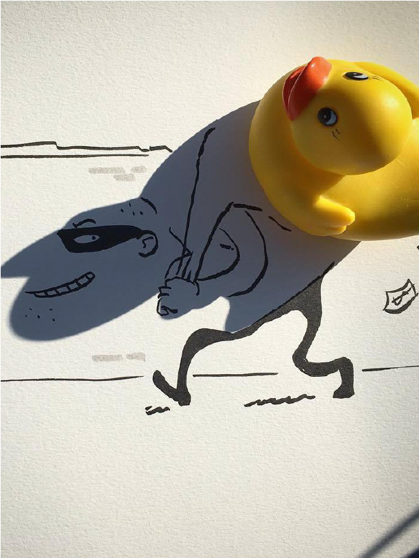 【藝術無疆界】 比利時插畫家影子藝術品 鴨子變小偷、樹葉變綿羊、玻璃杯變黑膠