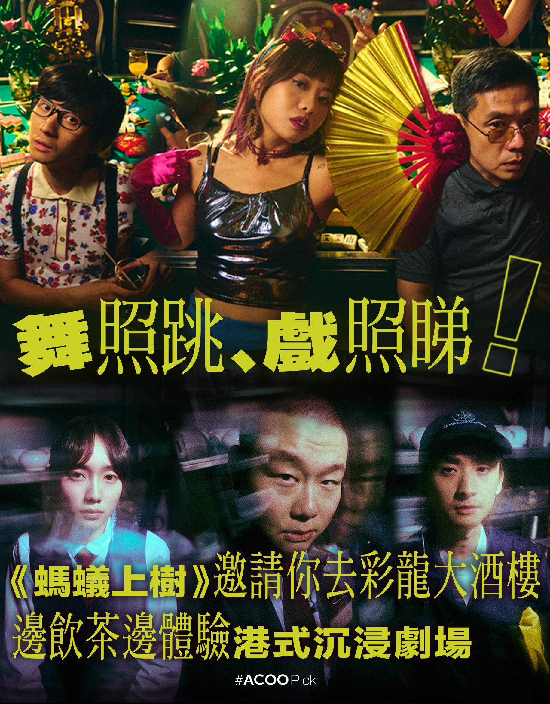 衣香鬢影的舞池、耳邊響起的懷舊金曲、旋轉搖曳的舞步⋯⋯這幅屬於八、九十年代的浪漫光景,名為「茶舞」。當我們以為這種風靡一時的文化已成絕響,在石硤尾的彩龍大酒樓,它卻依然每日上演,將那個年代的浪漫與熱鬧,原汁原味地帶到我們眼前。 而現在,這個充滿故事的場景,更即將變為一齣戲的舞台。 一島劇場的體驗劇場《螞蟻上樹》,將劇場體驗搬進真實的酒樓。你不再是觀眾,而是一位座上客。一邊嘆茶食包,一邊近距離窺看三位「落難蟻民」的故事:一位不時抽筋的茶客、一位推銷員、一位看似永遠睡不醒的企堂⋯⋯他們在一餐茶的時間裡,為了「有啖安樂茶飯」,上演著一幕幕既荒誕又現實的攻防戰。 當劇情與現實交錯,你將會發現,每個在城市中掙扎求存的我們,或許都是那努力向上爬的「螞蟻」。 體驗劇場《螞蟻上樹》|一島劇場 編劇:潘惠森 策劃/導演/劇場美學:張凱婷 策劃/監製:林學賢 📅 日期及時間: [搵食社畜組] 主演:陳熙鏞、張焱#、郭爾君 22/11 (六) 11:45 AM & 3:15 PM 23/11 (日) 3:15 PM [紙醉金迷組] 主演:陳熙鏞、張至煒、蘇欣婷 23/11 (日) 11:45…