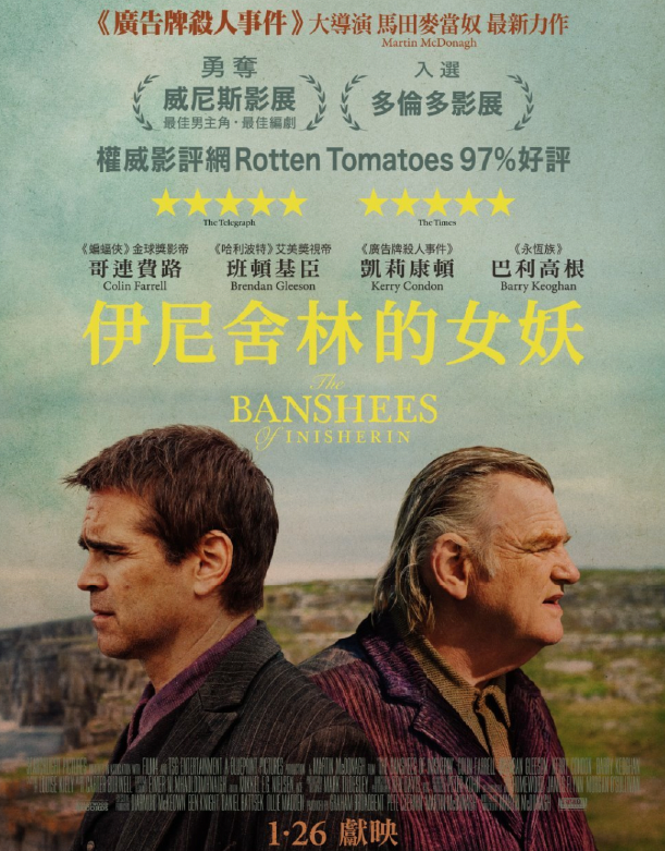 就在金球獎揭曉的同一天,也就是中港台馬華人圈子爭論著以《神奇女俠玩救宇宙》贏得影后殊榮的楊紫瓊到底算不算是「香港演員」的晚上,終於看了 Martin McDonagh 的得獎新作《伊尼舍林的女妖》(The Banshees of Inisherin)。 遠望戰火的愛爾蘭邊陲小島,日子不外乎是牧牛養驢喝喝酒,沒錯,電影獲八項金球獎提名,唯獨就是沒入圍最佳女主角,因為那是一隻名叫 Jenny 的小驢。故事圍繞兩個老男人 —— Colin Farrell 和 Brendan Gleeson,一隻狗,一間破爛的酒館,然後就沒有了,貧瘠的外島,就連愛爾蘭「內戰」看在他們眼裡都只是「外面」發生的事情。看似平淡枯燥重重複複,太陽底下再無新事,但故事突如其來就開始了,明明教人摸不著頭腦,但 Martin McDonagh 居然在最無聊沒趣的兩個老男人身上,寫出了許多浪漫的意義。 《伊尼舍林的女妖》整體風格跟 McDonagh 前幾年的作品像《廣告牌殺人事件》和《癲狗喪七》都非常不同,戲劇張力鬆馳,節奏冗長,幾乎每個角色都以極緩慢的速度在移動,卻又陰鬱懸疑,帶著晦暗不安的緊張感覺。翻查資料,這原來是 Martin McDonagh 廿年所執筆的舞台劇劇本「阿倫群島三部曲」(The Aran Islands Trilogy)裡從未發表的最後一部。關於愛爾蘭的冷知識:阿倫群島主要是由三個小島嶼組成,它們分別伊尼什曼(Inishmaan)、伊尼什莫(Inishmore)和伊尼舍林(Inisheer)。Martin McDonagh 便將三部曲取名為《伊尼什曼的瘸子》《伊尼什莫的上尉》和《伊尼舍林的女妖》,都隔著某種距離,描述著愛爾蘭內戰的動盪年代。無端端就起爭執了,本是同根生,你我各不相讓,誓要至死方休,在伊尼舍林的老男人是這樣,在愛爾蘭主島挑起戰爭的人也是。再枯燥無聊的地方,都會因為一件沒任何意義的事情而招惹仇恨,爭個魚死網破。你看,就連楊紫瓊算不算「香港演員」都可以招惹那麼多仇恨言論,人世間許多事情就是這麼無聊,卻又是那麼漫長而折磨。 《伊尼舍林的女妖》成為今屆金球獎的大贏家,橫掃最佳男主角、最佳劇本和最佳電影三項大獎,恭喜…