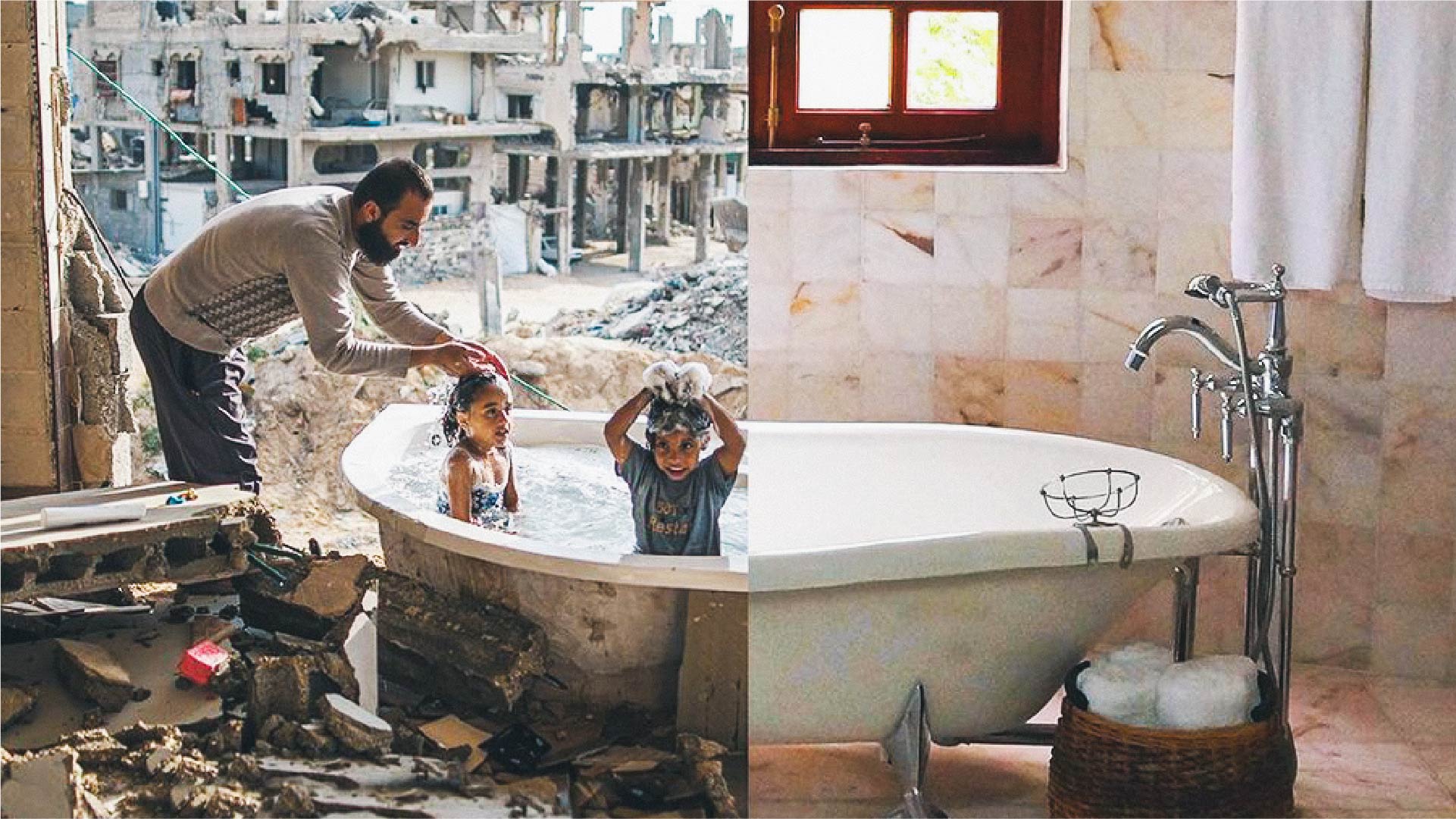 【同住地球村】 一個浴缸兩個世界 照片對比世界殘酷 土耳其藝術家:不要對問題視而不見