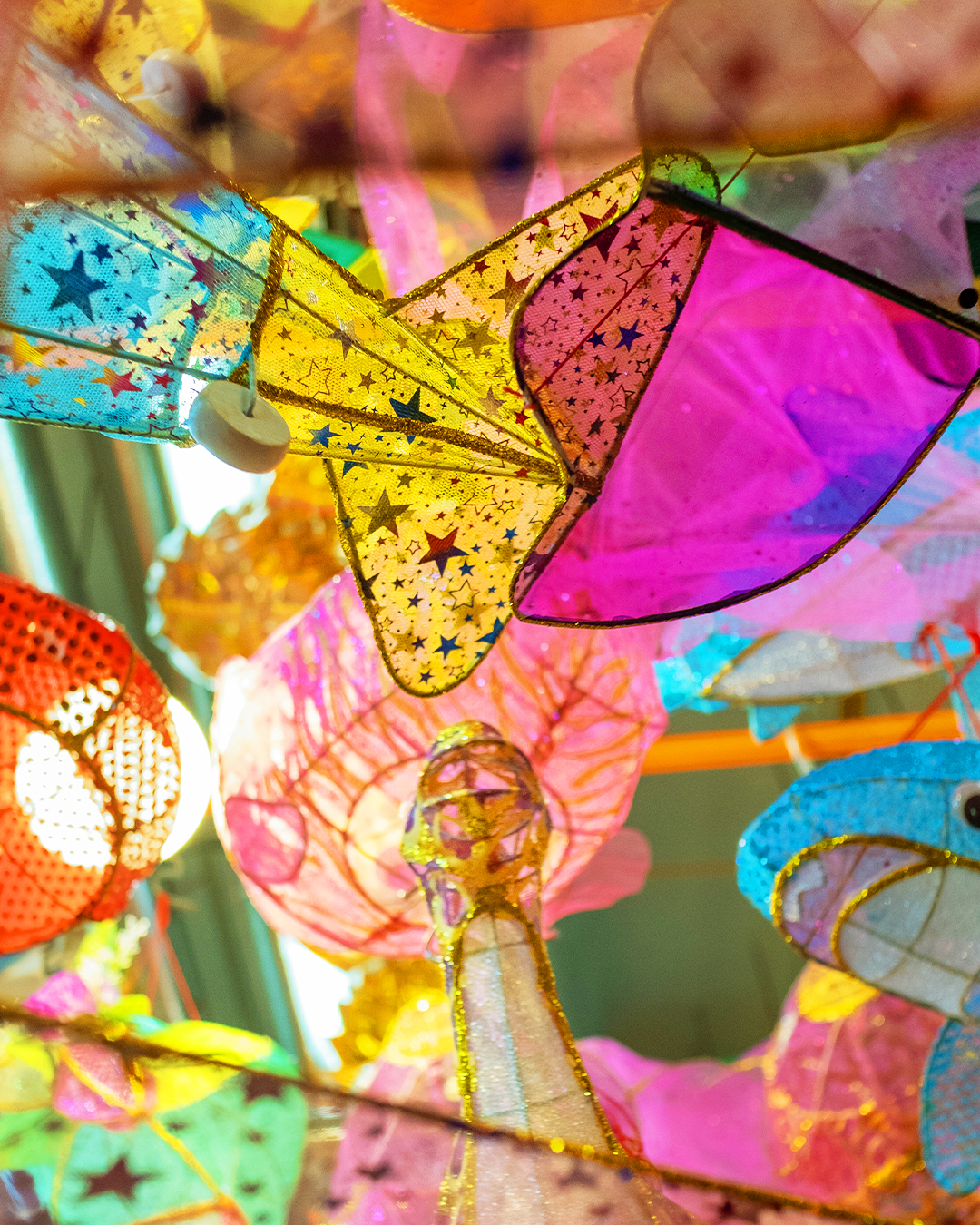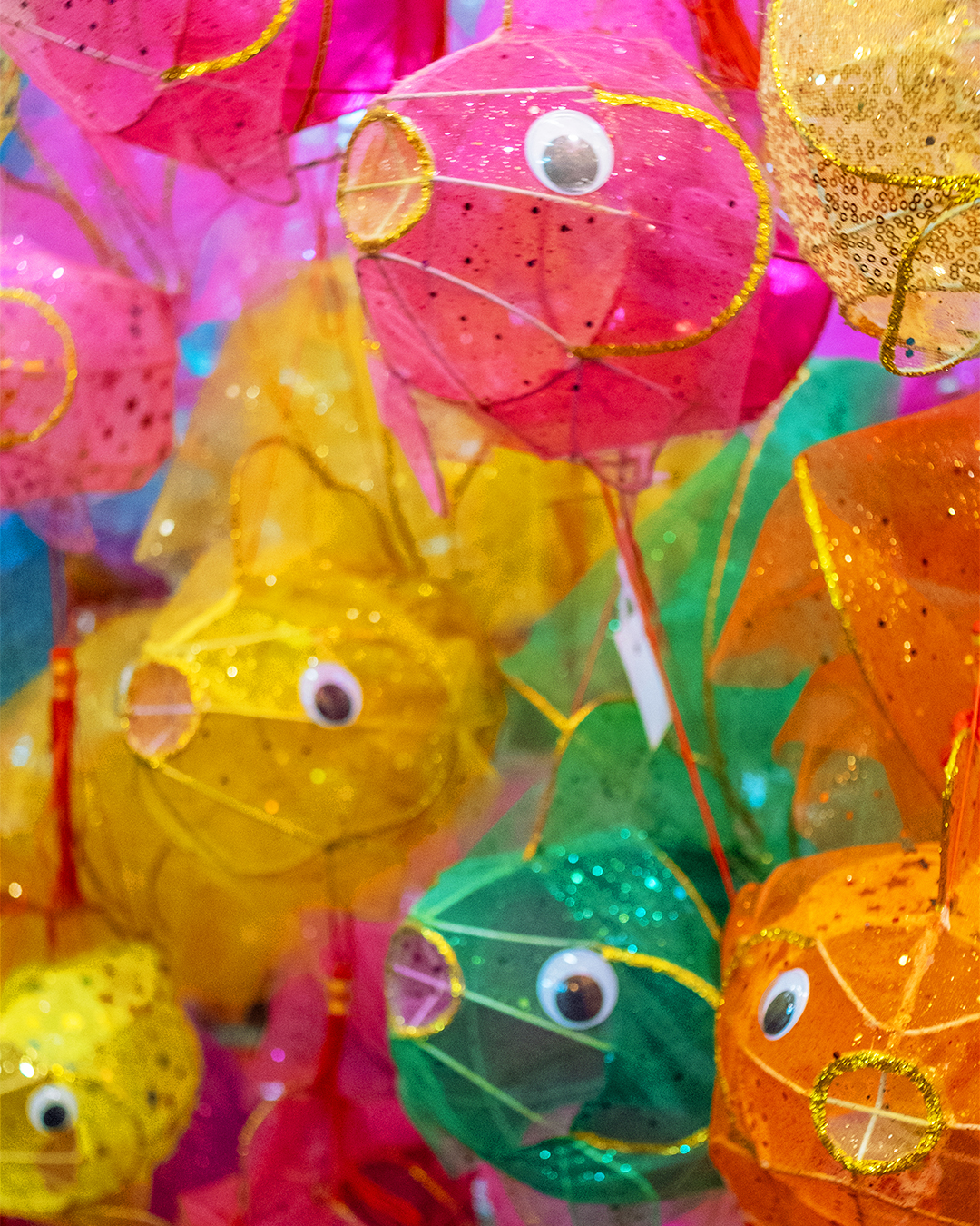 大橋街市的香燭紙紮店每年中秋都會販賣由人手紮作而成的燈籠。一個個金魚、白兔燈籠,圍繞起元朗大橋街市一隅的通道,築成色彩繽紛的隧道。