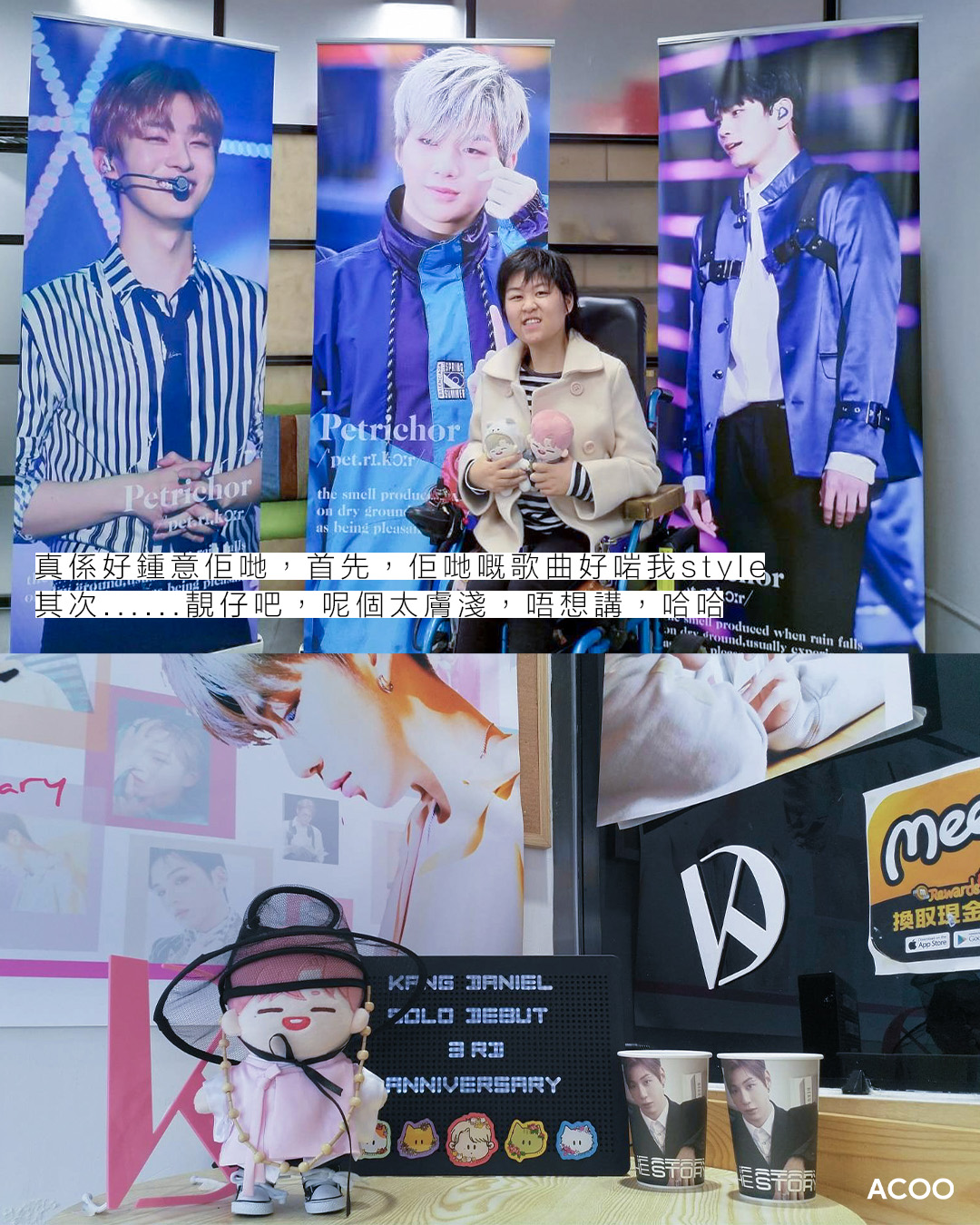 與平機會及亞博的來回,是Fish追星路上一個還未完結的小枝節。周旋之際,姜丹尼爾首度來港,在九展舉行演唱會。Fish難掩興奮:「因為我比較被動,我一定係要等佢哋到香港見我,好難到韓國見佢哋,所以我會很珍惜佢哋每次嚟香港嘅機會。」