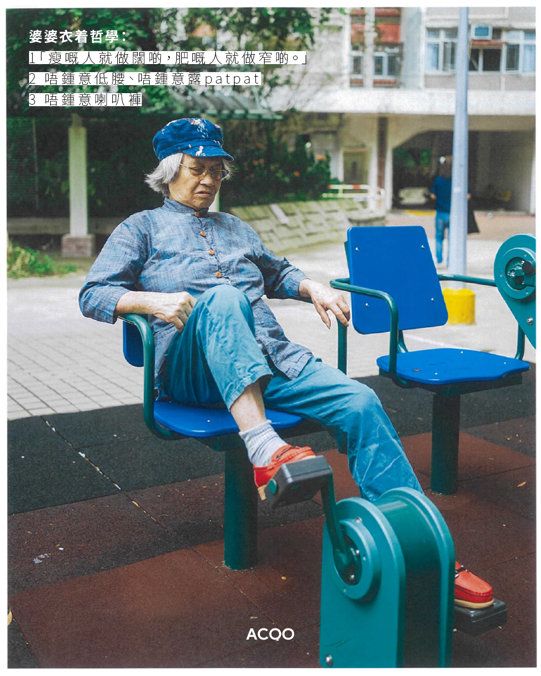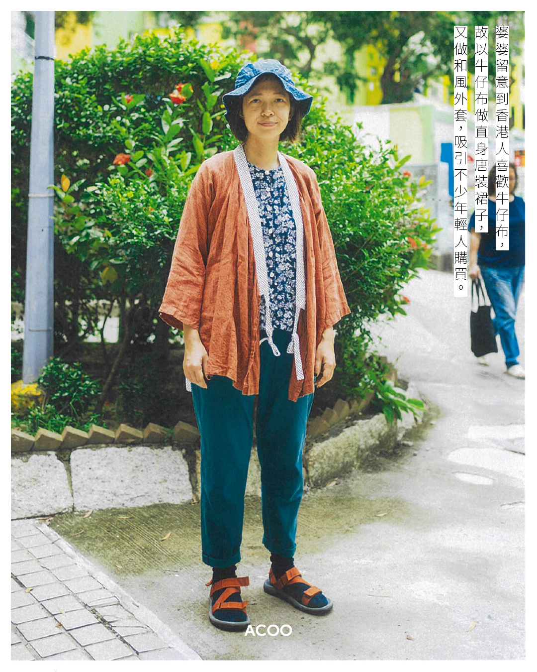 小蘭婆婆越做越起勁,開始研究起款式來:她特意用牛仔布mix長衫、燈芯絨mix和風外套,她閒時會去深水埗基隆街買布,「棉、麻最好着,膠質我就唔會要。香港人鍾意牛仔布,太厚、太薄我都唔會要」。
