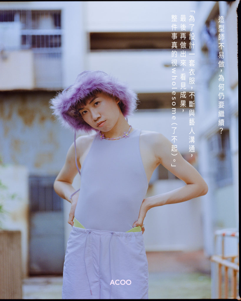 香港地,做設計,最常聽到的問題是:「點樣搵食?」當薪金長期被拖欠,怎樣生存?「我每月接一兩單工作,基本上都還可以。別看我這樣,我物慾真的很低。」Barry說當下最想買的,是一條紫色泳褲、一雙紫色鞋,以及一個臉部按摩器。他也承認自己「是有點任性」,不用養家,因此得以隨心所欲,繼續在這行發展。即使造型師的工作不如想像般美好,但他還是樂在其中,「為了設計一套衣服,不斷與藝人溝通,最後再做出來,看見成果,整件事真的很wholesome(了不起)。」