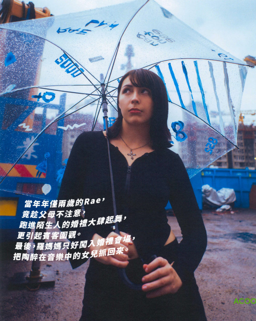 Rae的眼睛大大、鼻子高高,深邃輪廓表明她是名混血兒——她說廣東話時,不時夾帶幾句流利、帶澳洲口音的英語。但她最愛吃的,是茶餐廳的奶茶、腸仔包;她從小聽得最多的,是《傻女》、《月半小夜曲》。「爸爸常在開車時聽《月半小夜曲》,我本身沒有聽過,唱著唱著,便懂得背一小段副歌了。」
