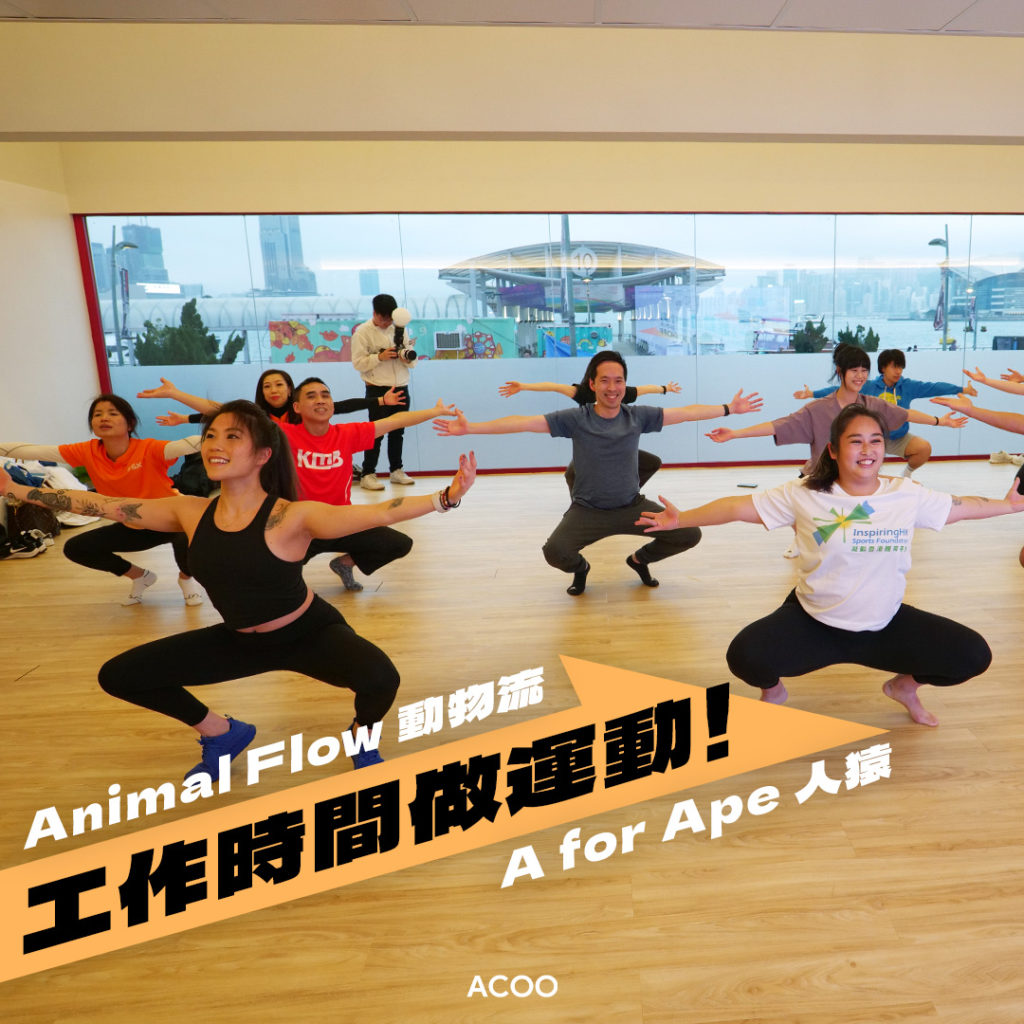 每天留在公司9小時,下班真的並非人人有毅力去運動,不如我們試一些在工作時間也能做的運動?在凝動第二屆《企業「一」起動》揭幕當天,機構特別邀請到10間優秀實踐企業代表一起參與運動課堂「Animal Flow」(動物流),這是一種能訓練身體協調、柔軟度和核心肌群的四足運動,掌握「ABC」動作,即Ape(人猿)、Beast(野獸)、Crab(螃蟹),通過吸氣和呼氣配合,便可以發掘和感受身體,讓運動變得有趣。
