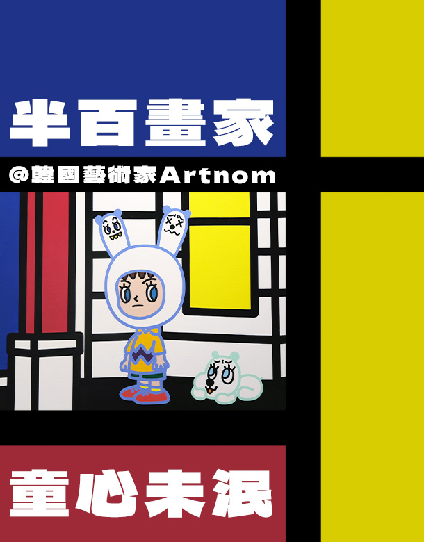 隨着年紀的增長,你有沒有發現自己逐漸失去想像的魔法?小時候,我們喜歡淋雨踩水氹、通宵玩樂接早課也沒有在怕,但從甚麼時候開始會怕感冒、害怕沒有精神上班,可能萌生這個想法的那一刻,就是我們開始失去童心的時候。韓國當代藝術家Artnom喜歡以原色、強烈對比、活潑的風格創作,並在二次創作中探討流行藝術及文化,從其畫風中完全無法想像畫家本人已年過半百,只因畫中角色的表情動作、色彩場景都充滿童趣、搞怪和不怕搞砸事情的童心。 藝術神奇的是它能在不知不覺中影響人心,若想重新感受青春的莽撞找回自己的童心,不如一起走進Artnom的藝術萬花筒,從他的畫展《Childhood Heart》感受世界! 「我的創作主要是真誠表達自己喜歡的東西。」對比起說一個特定的信息,Artnom更喜歡透過畫中角色來表達不同面向的自己。同時,因為藝術家的童年深受宮崎駿的動畫影響,讓他很重視生命、重生和保有一顆純真的心的想法,而這些都能在畫家喜歡的色彩、圖案如彩虹、心心及快樂的表情中反映。然而,Artnom對社會規範的疑問與質疑則體現於其選用的強烈對比色彩之中。 Artnom《Childhood Heart》 日期:即日至3月14日 時間:上午11時至下午8時 地點:尖沙咀海港城海運大廈L3 OT308A