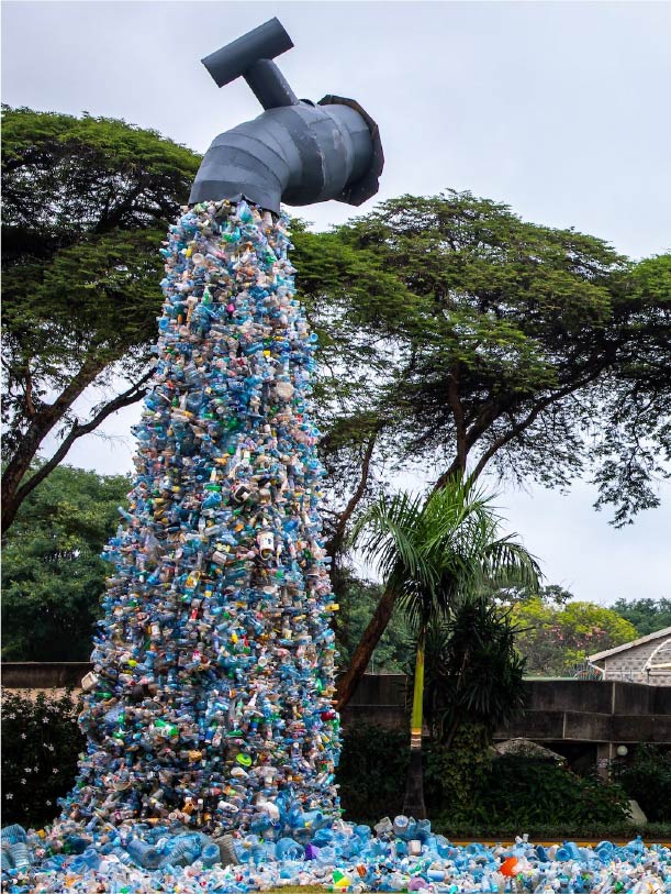 聯合國環境署(United Nations Environment Programme - UNEP)肯亞奈洛比總部外出現一座巨型水龍頭,噴出來自非洲最大貧民窟基貝拉(Kibera)的塑膠。國際知名藝術家Benjamin Von Wong解釋雕塑《Giant Plastic Tap》的創作理念是鼓勵大眾針對塑膠災難的源頭,像關掉水龍頭一樣管制塑料生產 #TurnOffthePlasticTap,不再只停留在回收和清理的討論。創作團隊與慈善機構 Human Needs Project 合作,聘請100位貧民窟居民收集和清洗塑膠廢料,組裝成藝術裝置。這件作品迎接各國環境部長參與三月初的第五屆聯合國環境大會第二階段會議(UNEA 5.2),期許他們通過《全球塑膠公約》,從根源解決塑膠問題。 全球每年生產高達 4 億噸塑膠,生產速度超越任何其他材料。疫情下塑膠的需求更甚,用以製造大量單次使用的個人防護設備(PPE)。塑膠從石油和天然氣兩種化石燃料提煉,過程產生大量碳排放,加劇氣候變化。塑料回收率平均在 14-18% 間,遠低於鋁、銅和紙的 50%。過半塑膠落入填區和焚化爐,三分之一洩漏到自然界。海洋中的塑膠垃圾到 2050 年將增加 4 倍,當中包括護理用品常見的微塑膠,危害生態和食物鏈。WWF 2019 年委託大學進行的研究顯示,我們平均每週吃下一張信用卡重量(5g)的塑膠,主要來自喝水和進食貝殼類海產。長期身處塑膠之中可能影響生育能力和神經系統,落後地區露天燃燒塑膠垃圾會產生有毒氣體和造成空氣污染。 面臨全球塑膠危機,各國政府相繼實施禁令應對。中國 2020 年底頒布限塑令,禁用吸管、膠袋等一次性塑膠。 2021 年 7 月起,歐盟全面禁用塑膠餐具及其他一次性用品。而香港則在 2021 年尾就管制即棄塑膠進行公眾諮詢。70多個商業機構也趁聯合國環境大會前簽署聯合聲明,呼籲國際社會制定統一的監管標準,讓品牌對塑膠問題負責。簽署方更包括被Break Free From Plastic評為2021年全球三大塑料污染者:可口可樂、百事可樂和聯合利華。市場調查指出59% 消費者會抵制不解決氣候危機的品牌,相信商界逐步意識到市場需求,肩負社會責任以挽回消費者信心。 是次聯合國環境大會上,175 個國家及地區領袖通過制訂國際社會間首條具法律約束力的《全球塑膠公約》,可謂眾望所歸。首輪協商預料在