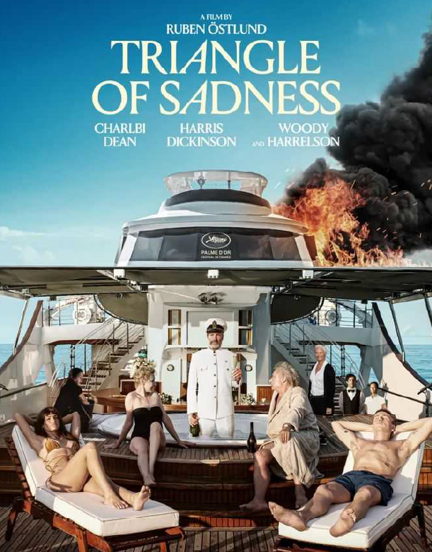 當代嘴賤毒舌王,瑞典導演 Ruben Östlund 幾年前已憑著《方寸見人心》(The Square)鋒芒畢露,寸盡眾生相,稱霸國際影壇。但個人而言,對前作過多的炫技與尖酸刻薄的所謂黑色幽默,始終不算太喜歡。那時還覺得康城評委果然都會沉迷這種打嘴炮作品。然而,意想不到地喜歡 Ruben Östlund 再度贏下康城金棕櫚獎的新作《上流落水狗》(Triangle of Sadness)。別以為是因為前作玩到過晒龍,今次稍有分寸,懂得收斂了。剛好相反,毒舌鬼才完全沒有藏鋒斂鍔的意圖。沒錯,前作已經太寸、太過火,但其實是還未夠癲。《上流落水狗》癲在舉一反三,將三部作品的腹黑份量濃縮進同一部電影,感覺像一杯喝到頭痛的特濃黑咖啡。 電影被切開了三個部份,單獨去看的話,每一部都覺得熟口熟面,就像 Netflix 真人秀《慾罷不能》與沉船戲經典《鐵達尼號》與荒島落難記《劫後重生》的混合體。網紅、富豪、船員、船長、清潔工,窮人有錢人白人黑人客人主人,每一部份都將這些角色的食物鏈架構倒轉一次,而每一次建立了某些權力階級關係,轉眼間就會打破。最初自以為是 influencer 的網紅情侶,人前人後主從關係先有一變,到一轉章被邀請上豪華郵輪,兩人打卡扮嘢之際,旁邊卻是一群軍火商和賣屎佬(俄羅斯資本家),面對真正賺大錢的 big boss 們,他們由幾百萬 followers 變成一粒塵都不是。然而,這群不可一世的富豪,又同樣以為郵輪上的一切有錢即可玩弄,結果他們才是鏡頭前被羞辱、被玩弄的對象,暴風雨下全部暈船浪,嘔吐大作,任人宰割。終日醉酒,自稱馬克思主義者的癡線佬船長才是掌握眾人生死大權,食物鏈的最高點。 結果豪華郵輪被炸毁沉沒,眾人流落荒島,食物鏈架構又再轉章,嘴炮船長一去不返,剩下的幾個富豪網紅都是求生能力接近零的廢物。唯一懂得捕魚生火的女清潔工,從此變成主宰他們的真正主人,甚至重新劃分親疏與階級,建立了只有幾個人的母系社會。故事裡的權力籌碼一變再變,譬如一開始是計算社交網頁上的按讚點擊率,後來是說真正的財富,再後來是看誰能不暈船浪,清醒到最後 —— 最後,是用求生能力衡量有沒有生存價值。某程度上應驗了黑格爾的主奴辯證,主人的皇冠並非絕對,隨時會被褫奪。網紅最終變成男妓,富豪只是等待施捨的乞丐,清潔工更一度以為餘生留在荒島上可以做土皇帝,將平時那些頤指氣使的富豪踩在腳下,將網紅小鮮肉當作寵物。但一切堅固的都將會煙消雲散,原來荒島根本不是荒島,剛勃起的權力一下子就崩塌癟萎。 相對《方寸見人心》的刻薄嘲諷,其實《上流落水狗》有過之而無不及,但舉一反三的故事佈局著實是一妙算,每一部份都將角色推到最癲狂的狀態,但一轉章,便將所有角色關係倒轉,然後再來一次。反轉再反轉,由一個極端走向另一個極端。劇情嚴重過火,卻仍然在情理之內。因為批判剝削別人的人最終都會變成被批判、被剝削的人,人人有份,沒有道德高地,無個好人。 唯一過火的地方,是電影有著許多挑釁角色和觀眾忍耐力的惡毒設計,譬如角色談話期間會一直聽到蒼蠅飛過耳邊的聲音,還有模仿郵輪遇上暴風雨的持續十幾分鐘搖晃鏡頭,一眾富豪起初故作鎮定,繼續吃喝,不到片刻已經全員崩潰,不顧儀態,當場大嘔特嘔,就連隔著銀幕坐在觀眾席都看到反胃。(首映場特意安排了嘔吐袋給觀眾,以為只是宣傳噱頭,其實以備不時之需。並非貶意,是名副其實睇到想嘔。)但看過《方寸見人心》和《上流落水狗》,都明白導演的作風就是不理會你的感受,就是要你尷尬不堪,甚至好難受。恃才放曠,擺明玩嘢,令人又愛又恨,入場前要有心理準備。